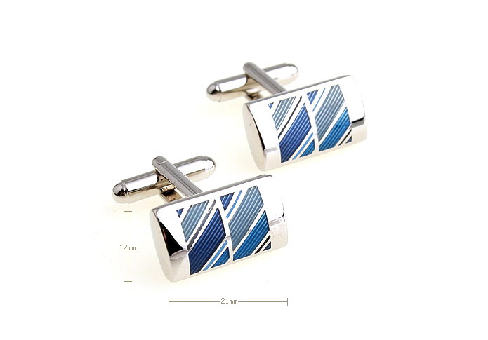 Dual blue tilt-striped rectangle cufflinks