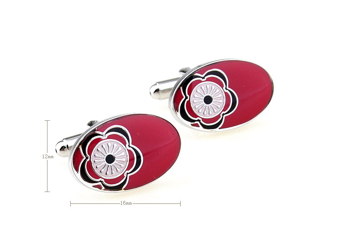 Flower head in red oval cufflinks |