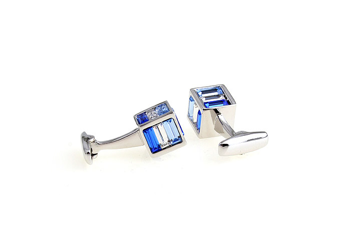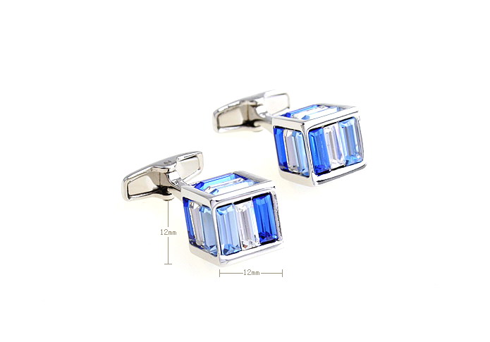 Triple blue strips 3D square crystal cufflinks |